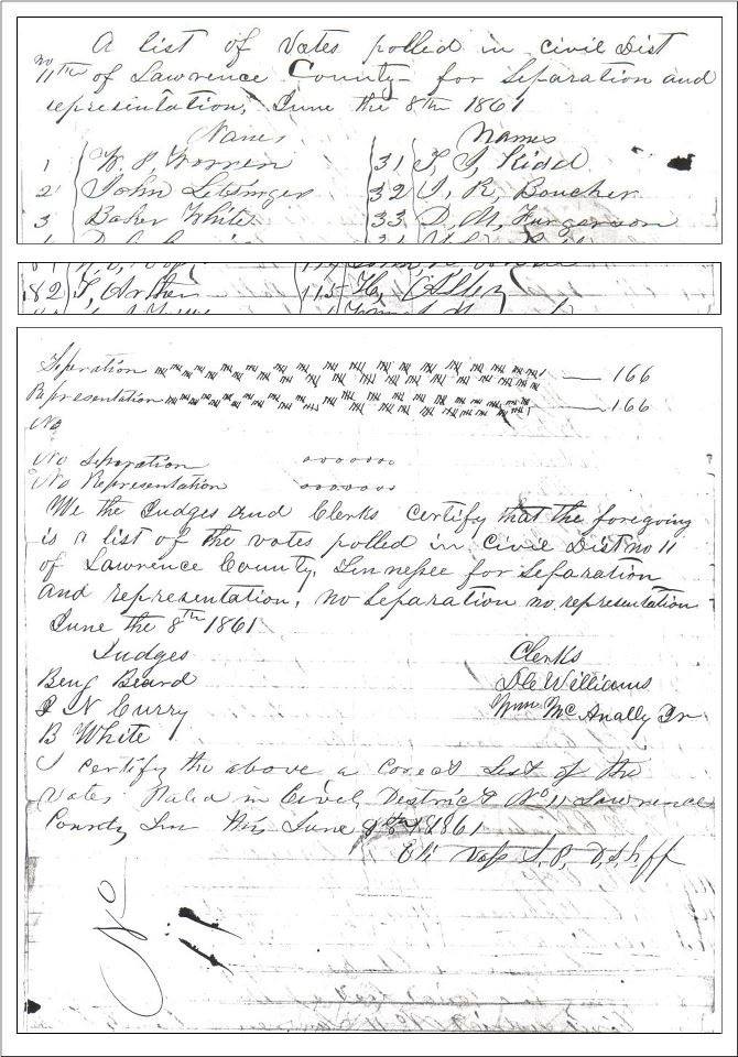 [3] Election Returns, 8 Jun 1861. “Separation and Representation.” Lawrence County Archives, Leoma Tenn.