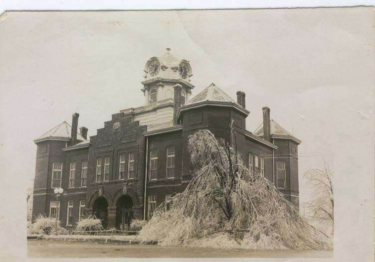 The Lawrence County Courthouse during the 1947 Ice Storm.