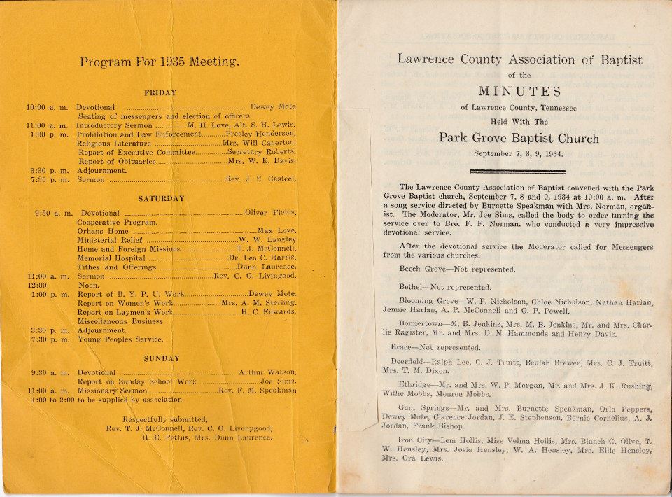 Minutes of the Lawrence County Association of Baptists 1934