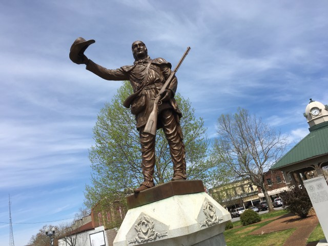Lawrenceburg’s 97-year-old full-body statue of David Crockett on the Public Square was recently restored by the Terra Mare Conservation company, using funds from a $15,000 grant from the Tennessee Historical Commission.