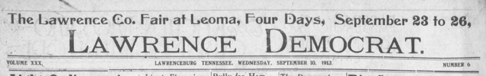 In addition to the standard agricultural exhibits which formed the core of the event, the Leoma Fair included some exciting–and eccentric–community events. The 1911 fair saw what may be the first recorded Fair Day in the Lawrence County school calendar, when school superintendent Jesse McArtor “ordered a suspension of all public schools in the county” on October 6 to encourage attendance of the Fair’s educational exhibits. The superintendent urged every school to attend the fair in Leoma, and took the opportunity to declare it a school “rally day.”